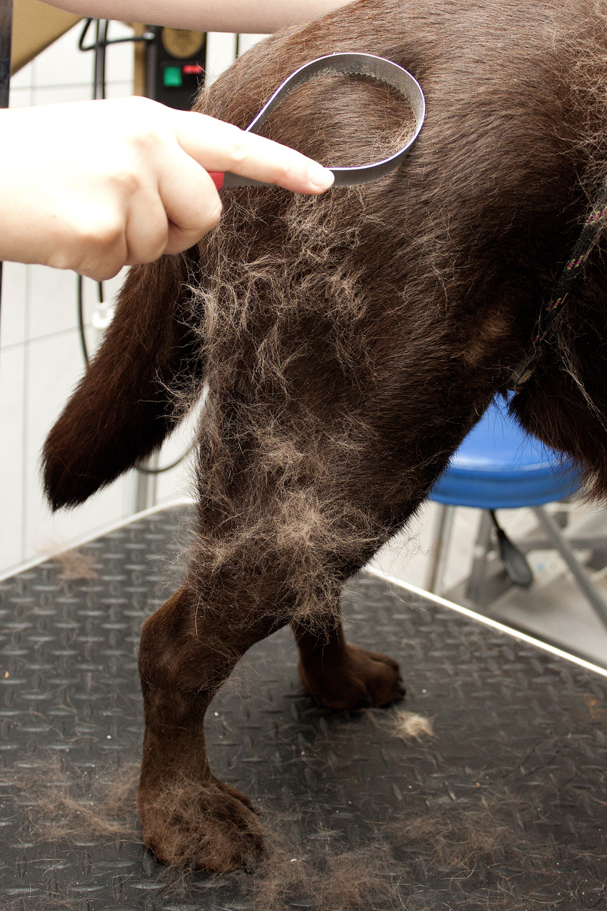 Echter soms zit bijvoorbeeld een hond tot aan de huid helemaal in de klit en moeten er maatregelen worden getroffen. Om misverstanden te voorkomen wordt voorafgaand aan een behandeling altijd overlegd of er bijzonderheden zijn omtrent de gezondheid van uw hond. wanneer er tijdens de behandeling bijzonderheden kenbaar worden waar wij voorafgaand niet van op de hoogte zijn wordt u daar uiteraard van op de hoogte gebracht, indien nodig laten wij u evt. ook naar de trimsalon toe komen.